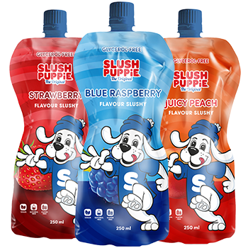 SLUSH PUPPiE Pouches contain ice cool recipes made with real fruit juice, using natural flavourings & with no added sugar.
